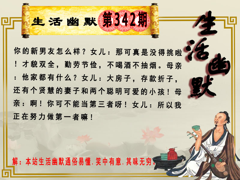 | 342期必中二肖:羊蛇 | 342期必中③码:11.35.01 |